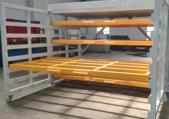 貨架有(yǒu)軌道(dào)和(hé)滑輪,可(kě)以像抽屜一(yī)樣可(kě)以推拉,可(kě)以放(fàng)闆材,模具等,德嘉可(kě)以定制(zhì)